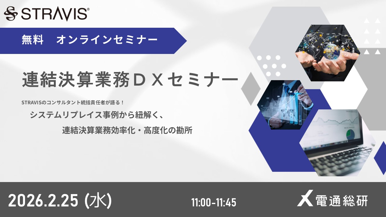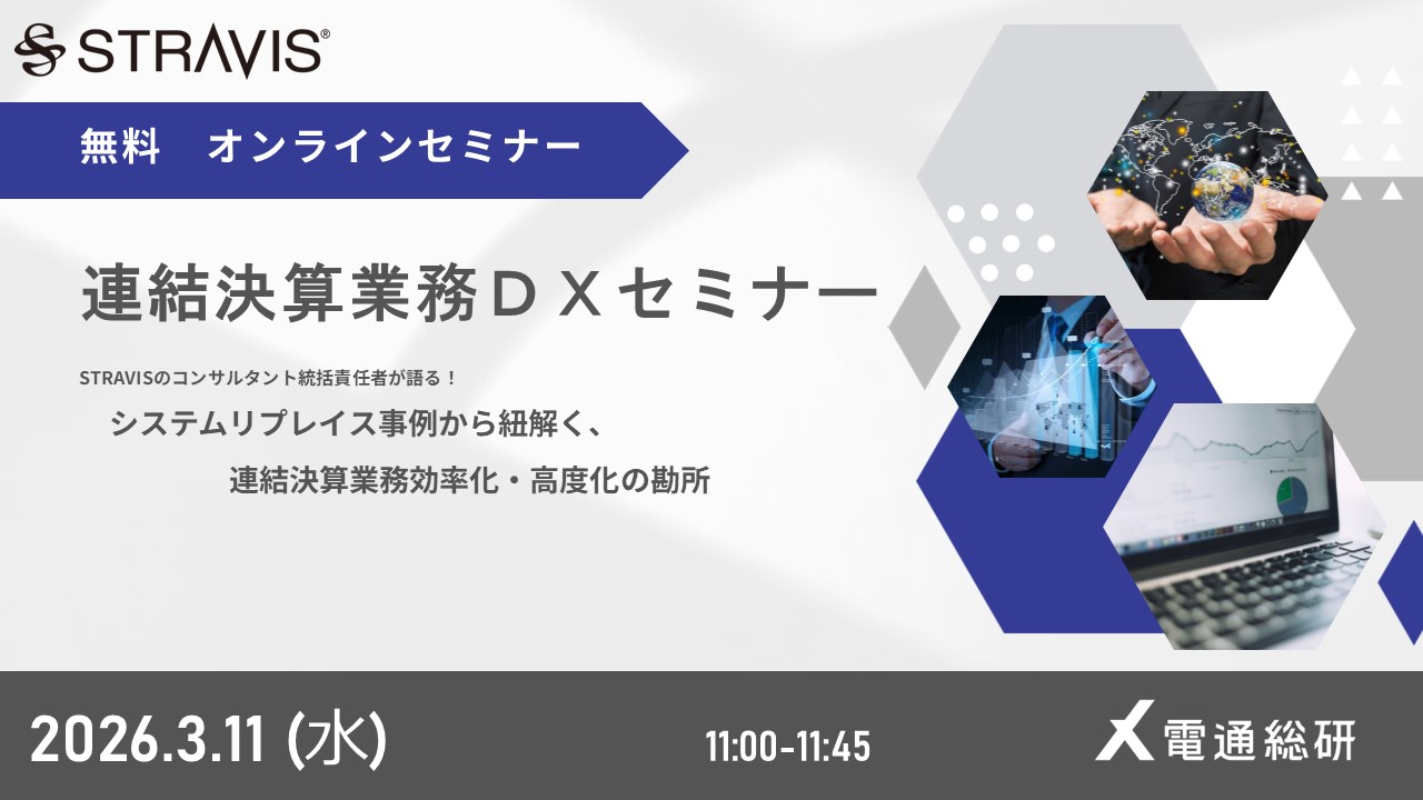 【連結決算業務DXセミナー】STRAVISのコンサルタント統括責任者が語る!システムリプレイス事例から紐解く、連結決算業務効率化・高度化の勘所